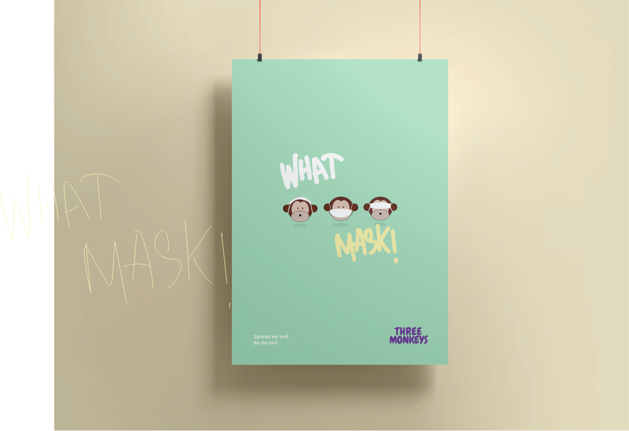 “What Mask!” is a business movement by Three Monkeys, to promote the use of Masks to children. The basic brief was to make masks as fun as possible, so whoever wears it, feels happy, even in a pandemic.